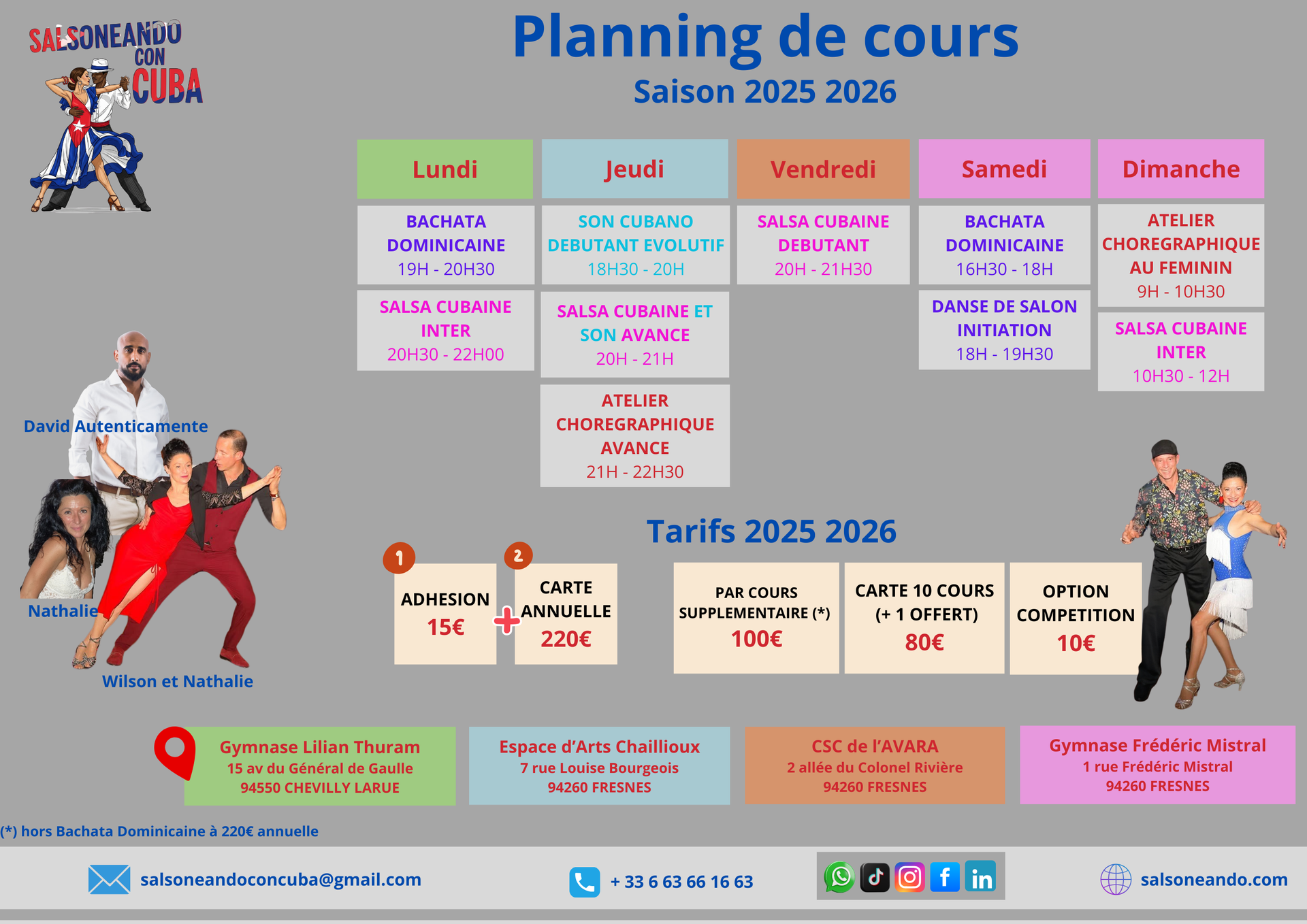 La Bachata Dominicaine est née en 1960 en République Dominicaine. Elle est issue du Boléro, du Son Cubain et du Tango, associée à ...